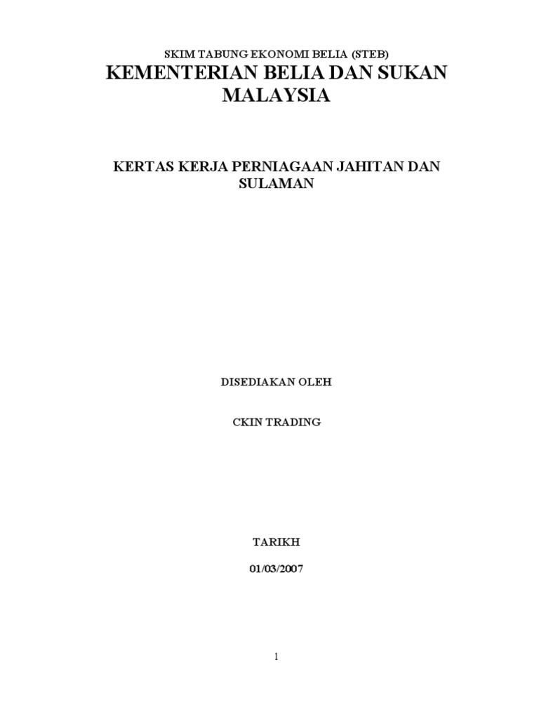 Contoh Kertas Kerja Rancangan Perniagaan Jahitan Pdf